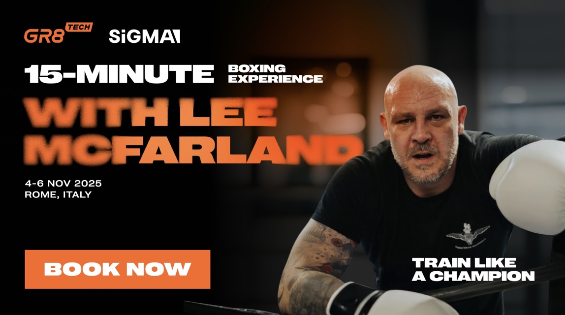 GR8 Tech is adding a knockout dimension to its SiGMA Central Europe presence with Behind the Gloves. On November 3–6 in Rome, booth 5028-2 visitors can take up a challenge and train like a champion with Lee McFarland, iGaming veteran and founder of the Behind The Glove initiative.