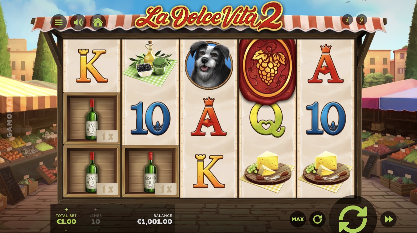 Check out a game preview by following this link: https://gamomat.com/games/la-dolce-vita-2/