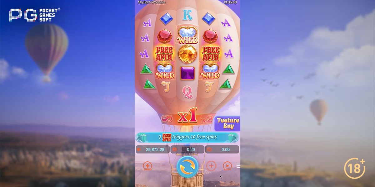Skylight Wonder welcomes players aboard a hot air balloon traversing across a dreamlike world high above the clouds. There are increasing multipliers and three reel frames that transform winning symbols into Wild symbols. The three reel frames are on the second row of the third column, the fourth row of the second column and the fourth row of the fourth column.The 5x5 frame is woven into the balloon’s envelope and is populated with glistening gemstones to deliver a serene gaming experience. A calming soundtrack puts players at ease as they take on the adventure high above the ground.